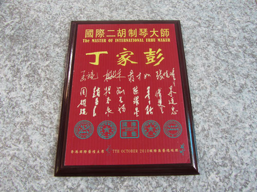 二胡制作大師丁家彭先生1949年出生樂(lè)器世家,17歲隨其祖父學(xué)琴藝,并深得精髓,其聰穎好學(xué),悉心鉆研與 探求二胡制作,博得同行的欽佩贊許,更得了許多知名演奏家的稱(chēng)贊,充分認(rèn)識(shí)到二胡制作每個(gè)環(huán)節(jié),都對(duì)二胡制作都有影響力,因此對(duì)二胡的選材,選料,蟒皮都十分嚴(yán)格,二胡整體穩(wěn)定性良好,環(huán)境干擾影響極小。